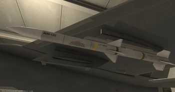 The AIM-120 AMRAAM (Advanced Medium-Range Air-to-Air Missile) is a radar-guided Air-to-Air missile available to the F/A-26B. Its potential range and speed in the air make it an excellent weapon for deployment against distant enemy aircraft. When fired, it relies on the firing aircraft's built-in radar to calculate a lead-pursuit course to its target, allowing it to account for even extremely fast-moving aircraft and adapt more easily to flight maneuvers. Once it gets close enough to its target, approx. 10 seconds before impact, the missile switches to a built-in radar projector to home in on its target ("goes Pitbull") and functions independently of the deploying aircraft's own sensors; this allows it to break off and make evasive maneuvers or even duck into cover to disengage if needed.