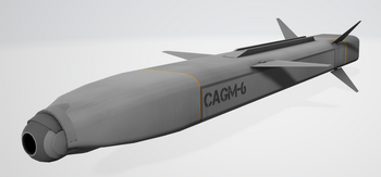 The CAGM-6 is a Cluster Air-to-Ground Missile available to the AV-42C and the F/A-26B. It releases 6 smaller missiles [sub-munitions] once close to the initial target point. These missiles act like smaller independently homing AGMs. Players can only aim the cluster missile, not the sub munitions. The sub munitions deploy 2.2 kilometers away from the target and will find targets inside of a 1 kilometer cone. Aiming and deployment of the CAGM is done similarly to the AGM-65.